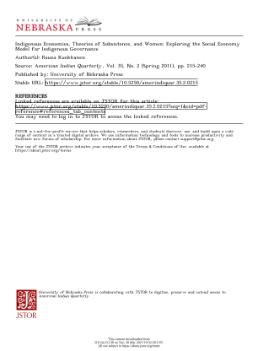Indigenous Economies, Theories of Subsistence, and Women