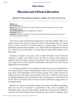 Rodney - Marxism and African Liberation