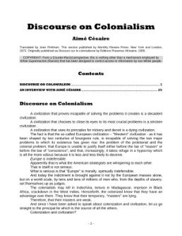 Discourse on Colonialism by Aime Cesaire